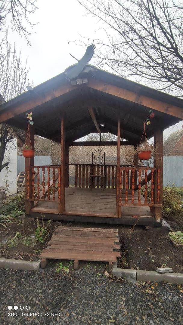 - Построенная деревянная беседка